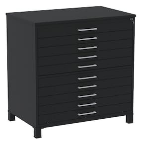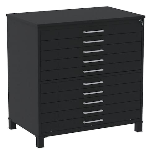 Mapoteca 10 Gavetas Pandin 120 cm (Larg) Inmetro Tampo MDP Preto Estrutura e Gavetas em Aço Preto