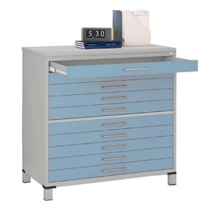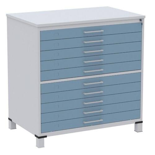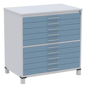 Mapoteca 10 Gavetas Pandin 120cm (larg) Inmetro Tampo Mdp Cinza Estrutura Aço Cinza Gaveta Azul Dali