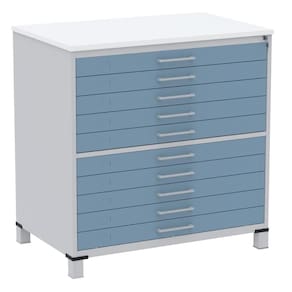 Mapoteca 10 Gavetas Pandin 120cm (Larg) Tampo MDP Branco Estrutura Aço Cinza Gaveta Azul Dali