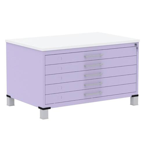 Mapoteca 5 Gavetas Pandin 120 cm (Larg) Inmetro Tampo MDP Branco Estrutura e Gavetas em Aço Lilás - Cinza