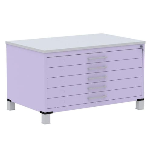 Mapoteca 5 Gavetas Pandin 120 cm (Larg) Inmetro Tampo MDP Cinza Estrutura e Gavetas em Aço Lilás