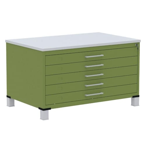 Fabricada com chapa de aço resistente, a mapoteca de aço galvanizado foi desenvolvida com um processo de tratamento anticorrosivo de nanotecnologia e pintada com tinta híbrida eletrostática para maior durabilidade. Com chapas mistas de aço #22 (0,75mm), #24 (0,60mm) e tampo em MDP de 25mm, garante robustez e eficiência perfeitas para espaços de trabalho que necessitam de armazenamento especializado.
