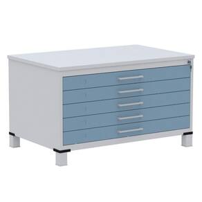 Mapoteca 5 Gavetas Pandin 120cm (larg) Inmetro Tampo Mdp Cinza Estrutura Aço Cinza Gaveta Azul Dali