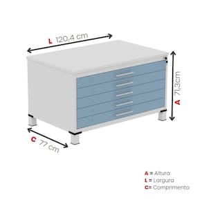 Mapoteca Mont 5 Gavetas 71,3cm X 120,4cm Aço Cinza/Azul Delrei