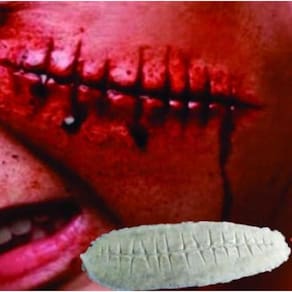 Prótese de látex para simular ferida com 1 corte grade de 13cm + látex 10 ml para colar + sangue líquido falso 10ml Pinte a prótese com bases específicas. Aplicação:
