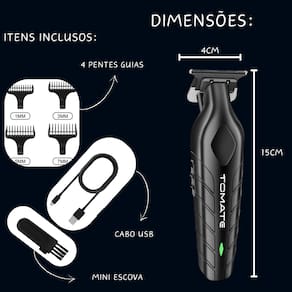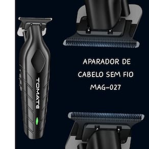 O modelo MAG-027 possui potência de 5 W e vem equipado com uma bateria recarregável, garantindo funcionamento contínuo e eficiente. Acompanha cabo USB para carregamento, escova para limpeza, quatro pentes com diferentes medidas e óleo lubrificante — tudo o que você precisa para um corte preciso e de qualidade.