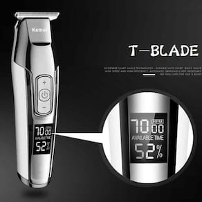 Maquina Acabamento De Cabelo Barba S/Fio Kemei Km-5027 Chegou a nova e exclusiva máquina Kemei KM-5027, esta incrível máquina pequena e potente agora está disponível para você comprar em território nacional com a nossa loja. Este modelo é sem fio e recarregável na tomada, assim você terá todo o conforto de cortar cabelos sem ter cabo lhe atrapalhando. A máquina é leve e boa de se manipular, possui uma bateria de alta duração comparada com outros modelos, uma carga de 2 horas lhe dá 4 horas de uso. Ela é perfeita para profissionais da área, possui um motor potente de 5w. Aguenta o trabalho duro do dia a dia e pode ser utilizada carregando. Serve para fazer pezinho, desenhos, disfarce, o que manda aqui é sua habilidade. Este modelo tem um visor em LCD e controle de rotação, caso você precise de força adicional em sua máquina pode ajustar a velocidade do motor apertando + ou diminuir apertando -. A rotação escolhida aparece no visor, juntamente com a porcentagem da bateria. Esta máquina é da marca Kemei, uma marca muito promissora que vem fazendo produtos de ótima qualidade e com um preço justo focado no mercado brasileiro, ao adquirir este produto tenha certeza de ter feito um boa aquisição. Esta máquina possui qualidade e mais funcionalidades que muitas outras de marcas conhecidas, que custam o dobro, ou três vezes mais. Nossa loja também trabalha com máquinas para corte de cabelo sem fio e com fio, barbeadores e máquinas shaver. Veja todos nossos anúncios - Acompanha 3 pentes guia tamanhos 1mm/2mm/3mm, para você já receber e começar a praticar seus cortes - Totalmente recarregável em rede elétrica 110 ou 220v, acompanha a fonte bivolt. - 2 Horas de carga para 4 horas de uso. - Potência: 5W - Frequência: 50/60Hz Itens inclusos: - 1 Máquina KM-5027 - 1 Fonte 110/220v - 1 Cabo USB - 3 Pentes Guia - 1 Óleo Lubrificante - 1 Escova para Limpeza - 1 Manual