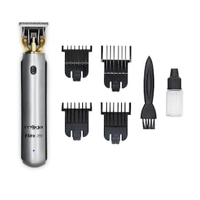 a máquina de corte e acabamento mega flex fit oferece experiência completa para o corte de cabelo, barba, bigode, corpo, virilhas e axilas. A mega flex fit foi desenvolvida para quem deseja ter o melhor equipamento para o cuidado pessoal. Seu design prático e ergonômico em apenas 128 gramas, possui lâmina slim em aço inoxidável com conceito aberto, que permite uma visão 360º do trabalho de corte, contorno, barba e acabamento. Possui bateria de lithium de alta durabilidade que permite o uso da máquina sem fio e pode te acompanhar no seu dia-a-dia. Incluso ainda 4 pentes de ajustes para a escolha da altura de corte. Deixe de lado as lâminas descartáveis e economize com a mega flex fit. Indicada para e doméstico. Especificações técnicas