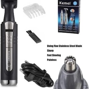Especificações Técnicas: Cortador de pelos da barba / nariz / cabelo / barba / sobrancelha Lâmina de lavagem removível é fácil de limpar. Lâmina de aço inoxidável Rotação de 360 graus Design antiderrapante Tipo de alimentação: Recarregável bi-volt Cor: Preto