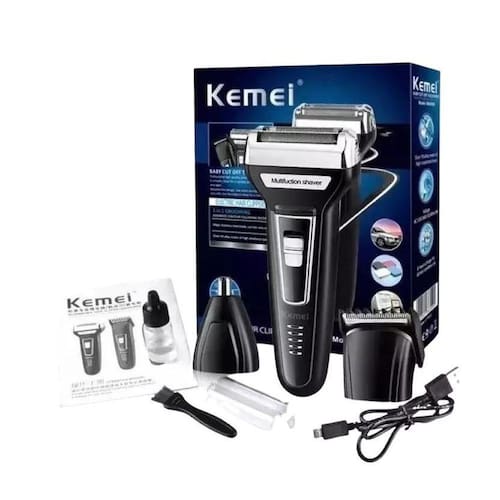 A Máquina Barbear Shaver Kemei 3 Em 1 é um modelo aerodinâmico e com design ergonômico. Este produto é uma máquina de cortar cabelo, barbeador e aparador de pelos recarregável. O barbeador possui duas cabeças de corte flutuantes, com sistema de ação individual. Ficha Técnica Marca: Kemei Modelo Número: KM6776 Alimentação: Recarregável Característica: Lâmina dupla Utilização: Corpo, Barba, Bigode, Cabelo Tempo de uso: Até 60 Minutos Tempo de Carga: 8 horas Voltagem: Bivolt (100 240V) Potencia nominal: 3W Material: ABS + Stainless Steel Tamanho: 16,5 cm x 6,5 cm Tipo de Item: Barbeador Elétrico, Aparador de Pelos e Cortador de Cabelos Itens Inclusos: 01 Maquina Kemei KM6776 01 Cabo de carregamento 01 Pincel de limpeza 01 Cabeça para barbear 01 Cabeça aparador de pelos de Nariz 01 Cabeça cortador de cabelo