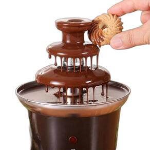 Fonte de fondue de chocolate de 3 camadas carrega chocolate branco ou marrom derretido da base ao topo da torre. Ele mantém o chocolate derretido com uma base aquecida que o mantém aquecido e fluindo. É o tamanho perfeito para pequenas reuniões e é um ótimo presente para os entusiastas do chocolate.