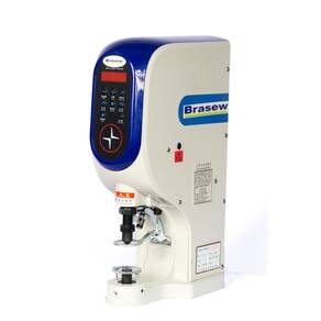 Máquina de coluna trasporte triplo com rodízio rotativo superior e inferior, com uma agulha. Ideal para costurar luvas de raspas e palmilhas de sandálias. As máquinas acompanham estante com regulagem de altura que seguem os padrões de conforto e ergonomia para o operador, além de tampo em madeira revestido em fórmica com régua graduada.