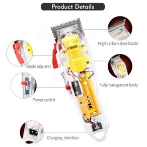Maquina Corta Cabelo Wmark Ng108 Transparente Linda maquina para corte em design transparente para uso do dia a dia, Lâmina alta do aço carbono, afiada, desgaste-resistente e durável Ajustador de cabeça de faca, as lâminas superior e inferior pode ser ajustado para 0 distância da ferramenta Escudo totalmente transparente Tampa antiderrapante. Non-slip, anti-estático, reduzir a Vibração Especificações Cor: transparente Poder: 8-10W Tipo: Hair Clipper Fonte Alimentação: carregamento e plug-in : alternar tipo Tempo de carregamento: cerca de 120 minutos Tempo de uso: cerca de 180 minutos Itens incluso: 1x Maquina NG108 4x Pente 3,6,10,13 mm 1x Escova, 1x Adaptador, Cabo de Carregamento USB 1x Lâmina de Cerâmica 1x Protetor de Borracha Marca: Não Informado Ean: 6971196412684
