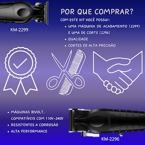 Kit de Maquinas de cortar Cabelo e de Acabamento KM2296 e KM2299