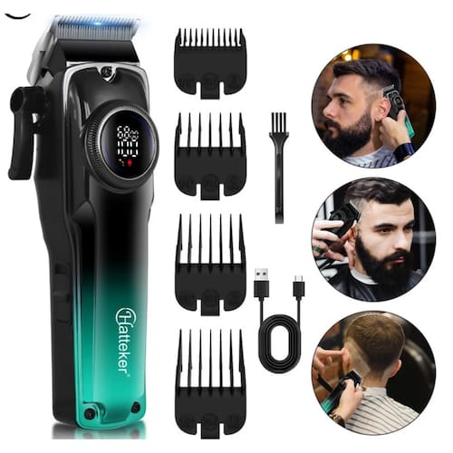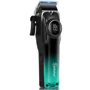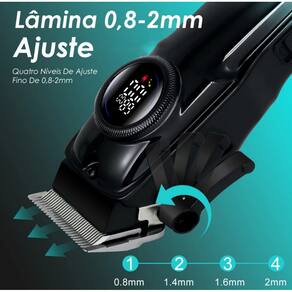 A máquina de cortar cabelo profissional Hatteker conta com uma bateria de lítio de 2000 mAh, oferecendo até 210 minutos de uso contínuo com apenas 3 horas de carregamento. Seu design sem fio proporciona liberdade total de movimento, mas também permite o uso com fio, adaptando-se a qualquer situação. O carregamento é feito via entrada USB tipo C, compatível com computadores, carregadores veiculares, power banks, entre outros.