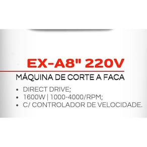 Máquina de Corte com Faca de 8 polegadas, com painel de controle digital, permite ajustar a potência de 500W à 1600W, alta qualidade e tecnologia com revestimento exterior contra oxidação, mantendo sempre a sua cor na condição NORMAL, ideal para cortar vários tipos de materiais como: algodão, lã, sedas, fibra química, vinil, plásticos e denim.