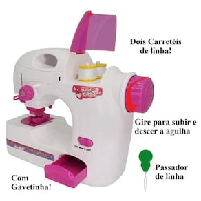 Conteúdo: - 1 Brinquedo Máquina de Costura - 1 Passador de Costura - 2 Carretéis - 1 Pedaço de Tecido