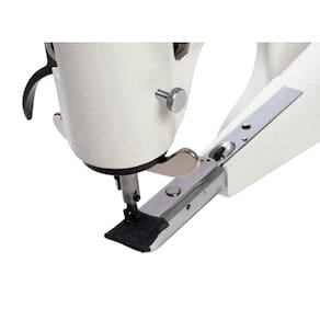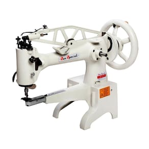Usada em oficinas de sapateiros para reparos, pode ser costurada manualmente com a alavanca posicionada no volante fixo.