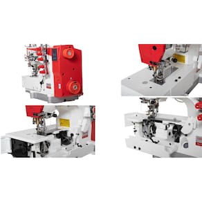 Máquina de costura industrial gaoneira plana SS5500D-01-1364-CB-MQ para confecção de vestuário com tecidos leves e médios.