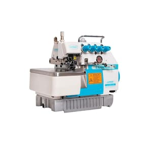 Máquina de costura industrial interlock média para confecção de vestuário com tecidos leves e médios.