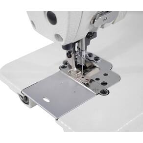 Máquina de costura industrial reta com refilador eletrônica para confecção de vestuário com tecidos médios.