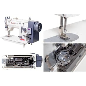 Máquina de costura industrial zig zag para confecção de vestuário com tecidos leves e médios.