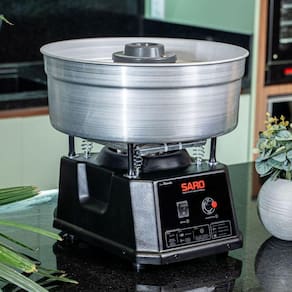 Com motor de alta tecnologia com regulador de potência esse equipamento que você produza até 4 algodões-doces por minuto. Sua bacia de alumínio polido é extremamente leve e brilhante, trazendo muito mais confiança aos seus clientes. Já seu corpo possui revestimento epóxi anti risco, trazendo muito mais durabilidade de resistência e pensando em sua segurança, esse modelo conta com 4 pés emborrachados anti-derrapantes e anti risco.