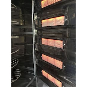 O Assador de Frangos Brasgrill oferece uma nova experiência para o seu negócio. Seu sistema é composto por 5 queimadores com controladores individuais, trabalham em conjunto com 7 grelhas giratórias permitindo que você asse frangos e carnes de maneira uniforme, deixando dourados e saborosos. Possui porta de acesso nos fundos da máquina facilitando o acendimento e a manutenção dos queimadores. Suas grelhas são desmontáveis facilitando a limpeza. Seu acabamento é em aço inox com porta frontal de vidro temperado que embeleza e divulga seus assados como uma vitrine. A assadeira tem a versatilidade de um motor bivolt, podendo ser utilizada em qualquer região do país. Equipamento muito econômico, onde um botijão de gás permite 4 ciclos completos de funcionamento, de 12 a 15 horas no total. Aproveite esse excelente equipamento para expandir ou iniciar seu negócio.