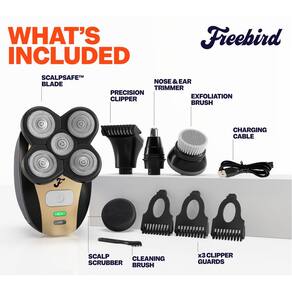 - O revolucionário barbeador FlexSeries da Freebird, anteriormente Freedom Grooming, é a única coisa de que você precisa para manter a cabeça limpa e bem barbeada, sem deixar inchaços e irritações! Este barbeador rotativo durável de 5 lâminas tem lâminas de liga macia com tecnologia anti-colisão avançada, tornando-o seguro, fácil de usar e conveniente ao depilar a cabeça e o corpo. Lâminas de reposição estão disponíveis.