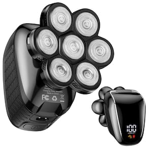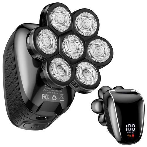 Barbeador de cabeça 7D, barbeadores de cabeça Wyklaus para homens carecas, barbeador elétrico de cabeça com aparador de pelos do nariz, kit de cuidados masculinos secos úmidos à prova d'água (preto) - Kit de cuidados profissionais 5 em 1: o barbeador elétrico masculino Wyklaus inclui um barbeador de cabeça, aparador de cabelo, aparador de pelos do nariz, escova de limpeza, aparador de costeleta, pentes de aparador de cabelo (3 5 7 mm) e cabo USB. Cabeças diferentes podem atender a qualquer uma das suas necessidades de barbear, beleza e limpeza, adequadas para casa e viagens, e convenientes para sua vida. Use o cabo de carregamento adequado para carregar o barbeador de cabeça e carregá-lo a tempo - Cabeça de barbear flutuante 7D: A versão atualizada do sistema de barbear flutuante 7D é ergonomicamente projetada. O design de 7 cabeças de corte aumenta a área de barbear e economiza tempo de barbear. Nosso barbeador é projetado com uma alça antiderrapante para facilitar a aderência, uma ótima escolha para suas cabeças raspadas. Limpe regularmente o cabelo na cabeça do barbeador - Lâmina dupla e rede de proteção dupla: o barbeador de cabeça careca masculino usa lâmina durável de camada dupla para capturar com precisão pelos longos e curtos, que são precisos, afiados e seguros. A rede dupla oferece proteção e reduz a irritação. O sistema de indução inteligente evita que o cabelo belisque de forma eficaz e proporciona uma experiência de barbear confortável e suave - Visor inteligente LED: o barbeador de cabeça careca para homens com visor LED pode mostrar com precisão a porcentagem da energia da bateria. Lembrete de bateria fraca, lembrete de lavagem com água mais inteligente. Pressione o botão de interruptor por 3 segundos para acionar o bloqueio de viagem para evitar consumo de energia adicional. Este barbeador elétrico usa bateria de grande capacidade de 600 mAh, 2 horas de carregamento rápido podem fornecer 60 minutos de tempo de trabalho. Carregue a tempo para uso regular - Impermeável, molhado e seco: se você quiser uma experiência de barbear mais limpa, recomendamos que você use espuma de barbear para suavizar a barba antes de usar nossa navalha. Todo o corpo dos barbeadores masculinos é à prova d'água IPX6, oferecendo a você um barbear seco confortável ou um barbear úmido refrescante com espuma de barbear. Você pode usar a pequena escova fornecida para limpeza, que é fácil de operar e fácil de limpar. Este kit de barbear versátil é um ótimo presente para o seu marido ou namorado