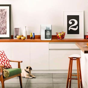 O sistema B.blend também funciona como um purificador de água que prepara água natural, fria, gelada, quente e com gás.