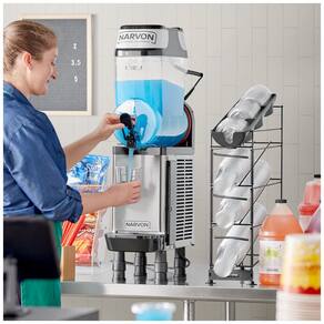 A Máquina de Bebidas Congeladas Narvon SM1 Single é perfeita para preparar seus drinks favoritos, como smoothies, granitas e bebidas refrigeradas como chá gelado e limonada. Facilmente ajustável, possui controle digital de temperatura, permitindo a adequação para bebidas geladas ou congeladas. Sua tigela de 11,4 litros conta com iluminação LED para destacar os produtos, alavanca de fácil operação, válvula sem gotejamento, controle de consistência de gelo e design compacto que se encaixa em qualquer espaço. Com chassi em aço inoxidável durável e bandeja removível, garante longa vida útil. Ideal para uso em ambientes internos ou externos. Aumente suas vendas com essa máquina versátil e eficiente!