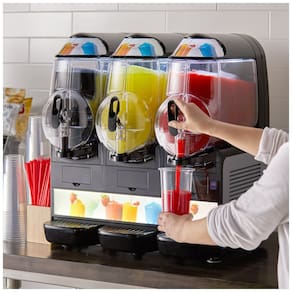 Refresque seus clientes com deliciosas bebidas congeladas com estilo usando a Máquina de Bebidas Congeladas Vollrath VCBF16837. Com três cubas de 9,8 litros cada, essa máquina é ideal para restaurantes, lojas de conveniência e bares. As cubas transparentes facilitam a identificação das bebidas, enquanto a luz interna destaca suas cores vibrantes. Os controles intuitivos permitem ajustes personalizados para diferentes estilos de bebidas, com modos para bebidas congeladas e granitas. O sistema de acionamento magnético é confiável, durável e de fácil manutenção, proporcionando maior vida útil. Com uma ampla superfície de congelamento e compressor adequado, a máquina reduz o tempo de congelamento e promove operação eficiente. Limpeza facilitada com o registro sem gaxetas. Transforme seu menu de bebidas com a Máquina de Bebidas Congeladas Vollrath!