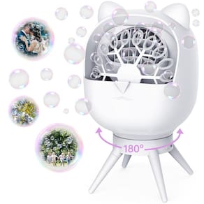máquina de bolhas automática para crianças branca - Mais de 38.000 bolhas coloridas: nossa máquina de bolhas adota tecnologia avançada de bolhas, que pode produzir mais de 38.000 bolhas coloridas por minuto, bolhas finas e duradouras, criando um mundo de bolhas de sonho. - Design rotativo atualizado: em comparação com outras, nossa máquina de bolhas é especialmente adicionada com uma função rotativa, que inclui 2 tipos de ângulos giratórios de 90°/180°. A função rotativa faz com que as bolhas balançem em um ângulo maior e cubram uma área mais ampla, criando um mundo de atmosfera de sonho. - Capacidade de 500 ml: a capacidade de 500 ml pode ser usada continuamente por mais de 40 minutos, não é necessário reabastecer a solução de bolhas várias vezes, para que você possa desfrutar do mundo dos sonhos com bolhas ininterruptas. - Sobrevivência de longa duração: bateria de lítio embutida de alta capacidade, longa duração, sem necessidade de carregamento frequente, suporta carregamento USB, conveniente e rápido, mantém a energia suficiente a qualquer hora e em qualquer lugar. - AMBIÊNCIA FANTÁSTICA: Esta máquina de bolhas pode trazer diversão sem fim e atmosfera fantástica em uma série de eventos como parques, pátios, casamentos, aniversários, festas, ao ar livre e assim por diante. A máquina de bolhas para crianças é definitivamente o brinquedo perfeito ao ar livre e um ótimo presente para crianças, crianças e animais de estimação.