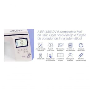 Leve o seu bordado para o próximo nível com a empolgante BP1430L. Agora você pode embelezar tudo, da decoração da casa ao vestuário, usando um dos 289 desenhos de bordado embutidos e uma variedade de fontes de letras. Você certamente gostará dos recursos de edição de desenhos que lhe oferece a capacidade de redimensionar, girar, reposicionar e combinar os desenhos com facilidade. Fornece muitos recursos e acessórios, prepare-se para bordar todos os seus desenhos na grande área de bordado de 16 x 26 cm da BP1430L. Compacta e muito fácil de usar, com a qualidade e tecnologia japonesa.