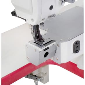 SS2153DMXHKCQI Máquina de Braço, Zig zag, transporte duplo, seca, lançadeira grande, 1 agulha, 2 pontos, tamanho do ponto 5mm, largura do zigzag 10mm, altura do calcador 6/12mm, Direct drive 220v, com led, com parada de agulha e controle de velocidade, 2000ppm, mesa em U