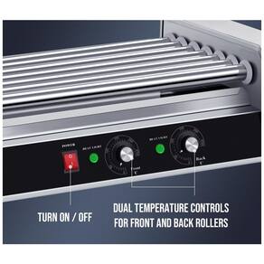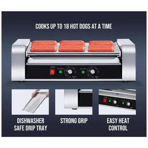 Construída em aço inoxidável de alta qualidade, a máquina de cachorro-quente SYBO possui 7 rolos antiaderentes capazes de acomodar até 18 cachorros-quentes simultaneamente. Com controle de temperatura dual, é possível ajustar separadamente a temperatura dos 4 rolos da frente e dos 3 rolos de trás. Fácil de limpar, com corpo em aço inoxidável resistente à ferrugem e bandeja de gotejamento removível. Equipada com potente aquecedor de 1000W, pés de borracha antiderrapantes e certificação ETL para segurança. Aproveite rotação contínua dos rolos para um cozimento uniforme e saboroso, incluindo proteção contra poeira com uma tela de proteção. Ideal para stands de comida, festas e churrascos.