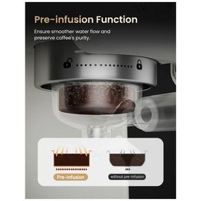 Porta filtro, 2 filtros, colher de café, funil doseador, jarra para espuma de leite e manual do usuárioBico vaporizador