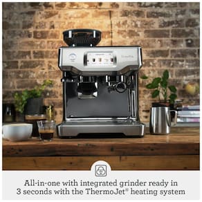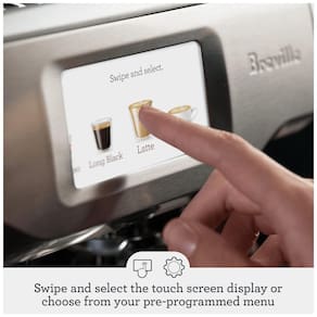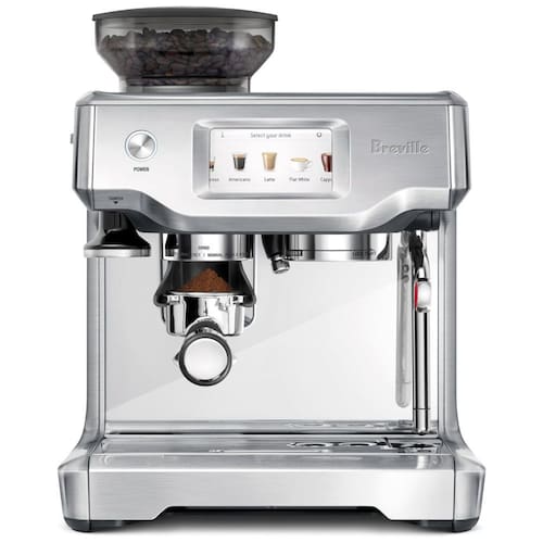 Máquina de café expresso automática Breville BES880BSS com tela de toque, moedor de café integrado, sistema de aquecimento ThermoJet, controle digital de temperatura PID, varinha de vapor automática para micro espuma de leite e capacidade de salvar até 8 cafés personalizados.Moedor de café integrado