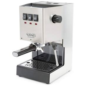 Máquina de café expresso Gaggia Classic Evo Pro fabricada na Itália, com pressão de 9 bar, varinha de vapor comercial, portafilter de 58 mm em aço inoxidável e caldeira resistente à corrosão.Pressão