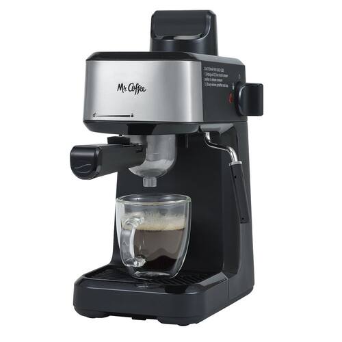 Mr. Coffee Cafeteira de café expresso a vapor com 4 doses de café com jarra de espuma de aço inoxidável