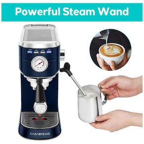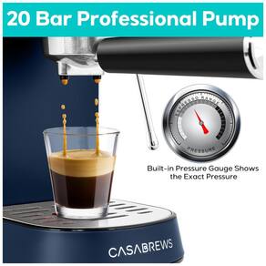 Prepare seus cafés expressos favoritos em casa com a máquina de café expresso CASABREWS com bocal de leite. Essa máquina permite que você faça desde cafés com leite até cappuccinos e macchiatos, tudo isso no conforto da sua casa. Com um design elegante de aço inoxidável, a máquina é durável e ideal para cozinhas de qualquer tamanho. Com um sistema de pressão profissional 20Bar, essa máquina semiautomática possui uma bomba italiana profissional 20 bar e motor potente de 1350W, oferecendo extração de alta qualidade e um aroma mais perfumado e rico. O manômetro integrado na máquina mostra a pressão exata, permitindo que você faça ajustes de acordo com suas preferências pessoais de gosto.
