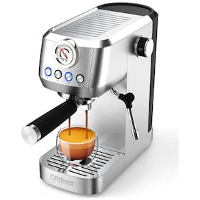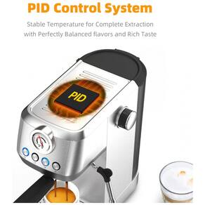 Máquina de café expresso profissional Mattinata, 20 Bar, 110V, 1350W, com batedor de leite, manômetro e design compacto.Moedor de café integrado