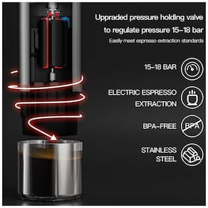 Máquina de café portátil USB para carro com bateria, prepara café quente ou frio, compatível com cápsulas Nespresso, LOR, Starbucks, Lavazza, illy, pressão de 15 bar, aquece em 2-3 minutos, corpo em liga de alumínio.Moedor de café integrado