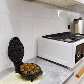 Máquina de Cake Pop Antiaderente para preparar cake pops, bolinhos e pães de queijo. Possui luz indicadora de funcionamento e trava de segurança.Chapa antiaderente