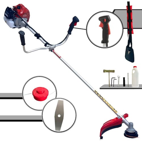 Com guidão ergonômico lateral, permite um alcance amplo e maior mobilidade, capaz de aumentar a produtividade diária. Possui motor 2 tempos á gasolina, de 62 Cilindradas; 3HP de potência que proporcionam maior performance e economia na operação. Seu conjunto de acessórios inclui kit de ferramentas, cinto de suporte almofadado, carretel de nylon e lâmina de corte 3 pontas.