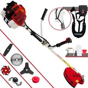 Roçadeira Lateral Kawashima KW52-L À Gasolina 2T 52c 2,5HP Com Lâmina 3 Pontas + Faca 2 Pontas 330mm + Faca 40 Dentes 255mm + Trimmer + Faca 6 Pontas 250mm