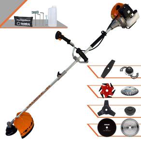Roçadeira Lateral Terra GRHB-430 Bipartida À Gasolina 2 Tempos 43cc 1,7HP + Faca 3 Pontas + Faca 40 Pontas + Faca 80 Pontas + Faca 6 Pontas 250mm + Escova Rotativa 38 Cerdas + Trimmer
