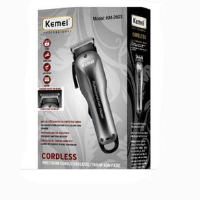 Máquina de cortar cabelo cordless kemei 2603 - bivoltKemei máquina de corte profissional de alta qualidade e sem fioO modelo 2603 vem repaginado, com estilo, potência e todo mais que um profissional precisa para um corte preciso e de qualidade.Lâminas crunch staggertooth: lâmina cromada de dentes alternados, oferece mais velocidade para corte preciso e suave. Seu estilo de lâmina fade também auxilia para uma melhor performance e um corte suave.Ergonômica: leve e de confortável manuseio, seu design sem fio permite a mesma qualidade de corte de uma máquina com cabo.Características:Máquina sem fio2 velocidadesVários níveis de altura60 minutos de funcionamento diretoFuncionamento de 480 minutos por cargaAjuste lateralBivoltPoderoso motor giratório8 wTempo de carregamento: 3 horasItens inclusos:01 maquina km 260304 pentes01 carregador01 óleo para limpeza01 escova para limpezaGarantia de 90 dias contra defeito de fabricação