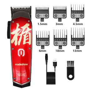 Itens incluso: 1 Maquina de Cabelo 6 Pente 1,5/3/4.5/6/10/13mm 1 Cabo Carregador USB Não acompanha adaptador 1 Óleo lubrificante Marca: Madeshow